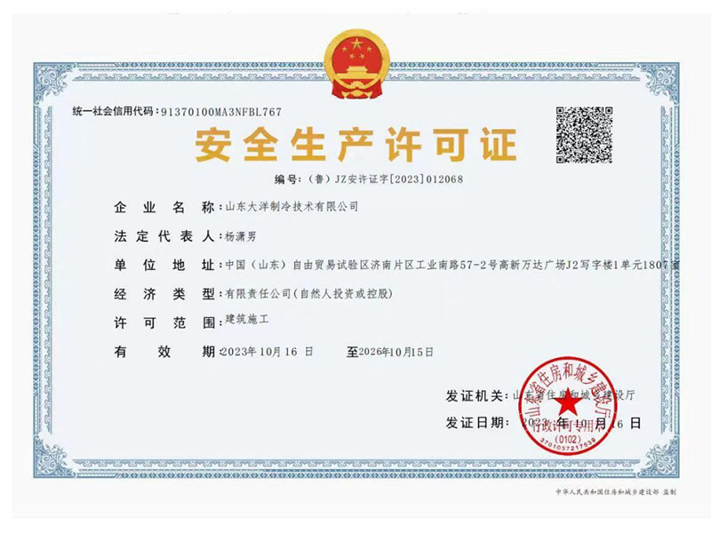 山東大洋制冷 · 資質證書
